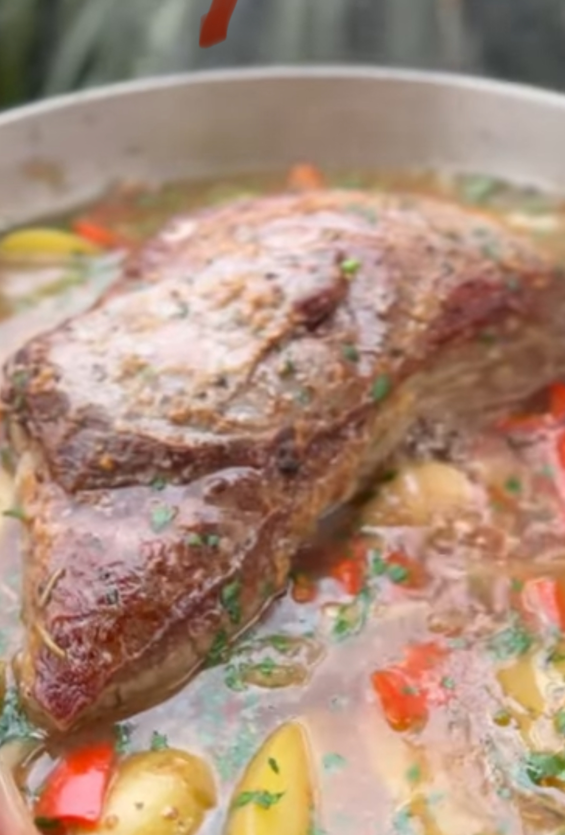 Colita de cuadrill a la cacerola con vegetales, crema y papas PARA COMPARTIR