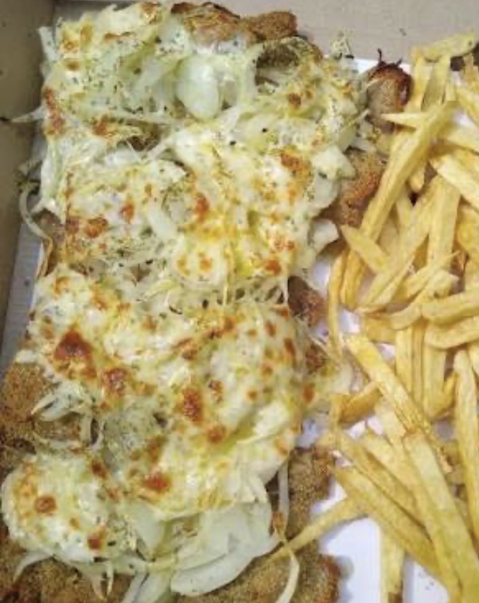 Milanesa de pollo a la fugazzeta c/guarnicion